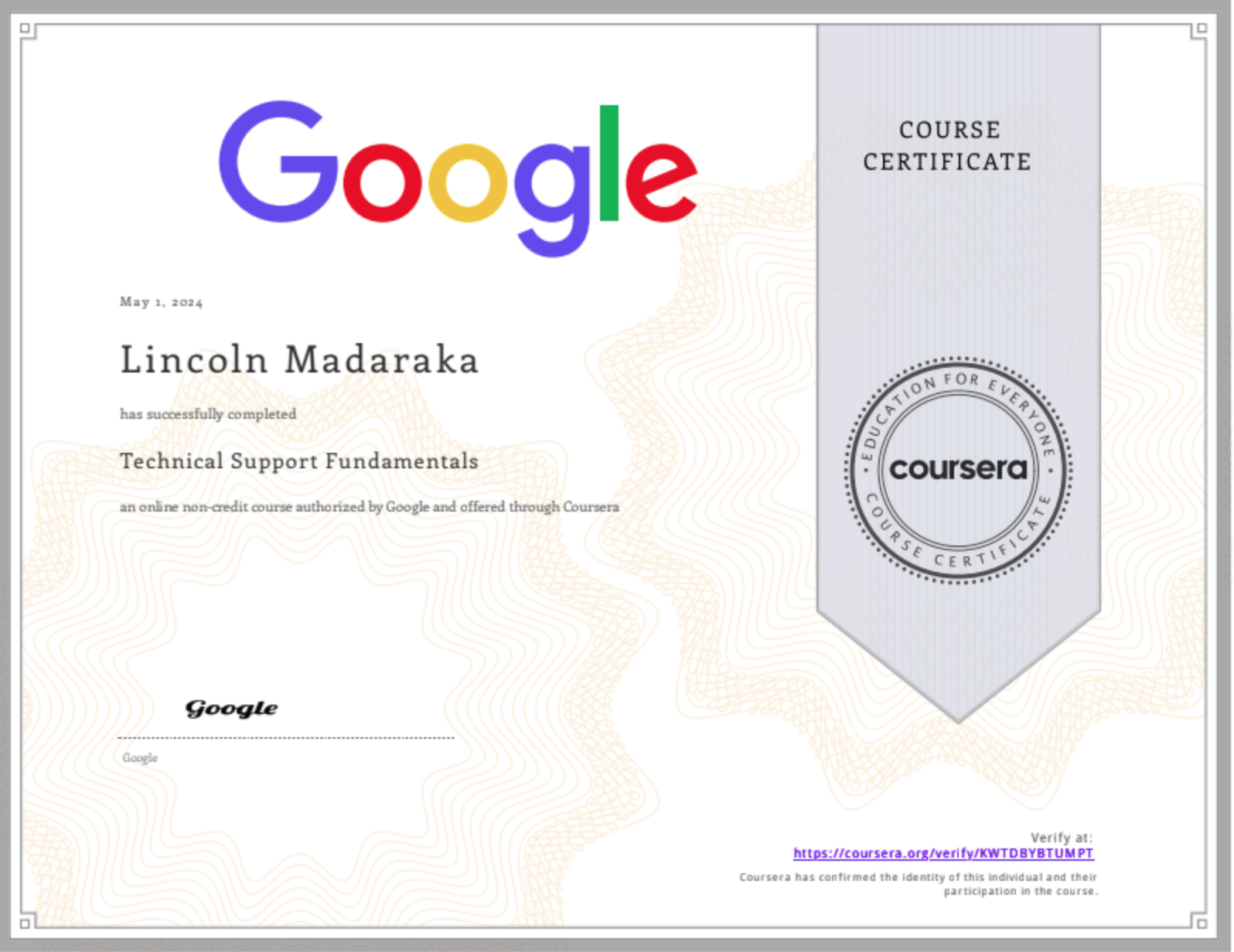 Completed Google Technical Support Fundamentals with practical foundations in troubleshooting systems operations and structured technical problem solving. Strengthened ticket triage root-cause isolation and user-focused technical communication.